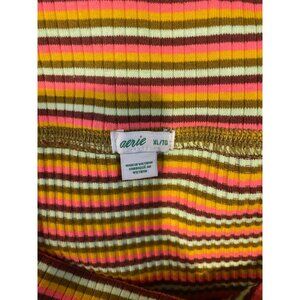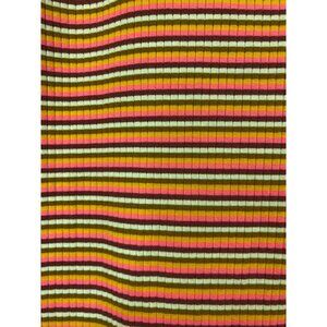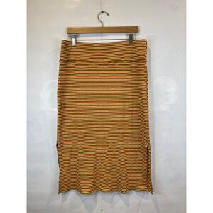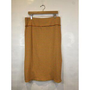 Stylish striped midi skirt. Features orange and white pattern. Comfortable fit. Perfect for casual outings.