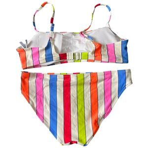 Aerie Striped Rainbow Bikini Set 2 Piece Swimsuit Medium M EUC