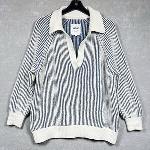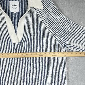 Up for sale: Aerie Sugar Rush Chenille Knit V Neck Collar Pullover Sweater Blue White Medium