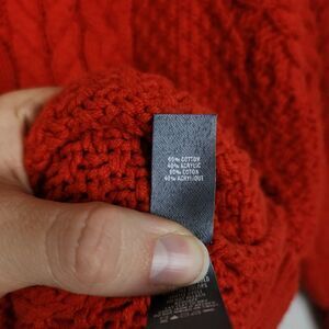 Excellent used condition! Super cozy and oversized with dolman sleeves. Cable knit material in a true red color. Great for winter but also for the transition into spring! Flat lay measurements are below: