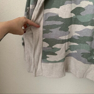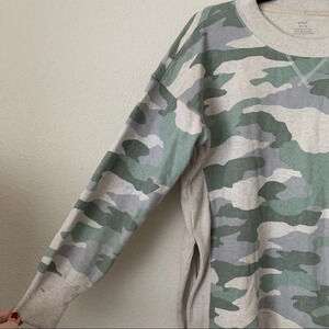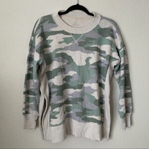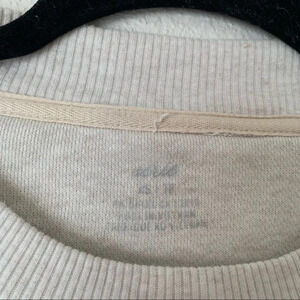 Gently used condition. Purple ink stain on the sleeve(shown). Slits on both sides. Relaxed fit. Crew neckline.