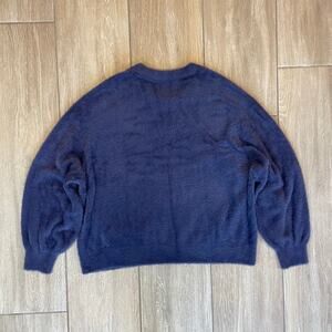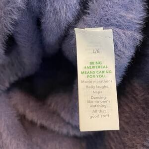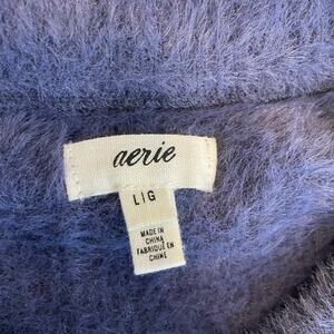 Aerie Sweater Women L Navy Fuzzy Fluffy Soft Pullover Crewneck Cozy Knit Top