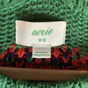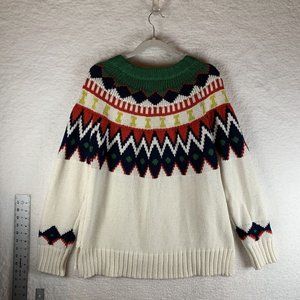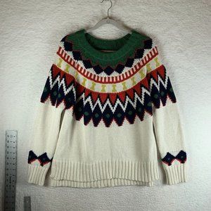 Aerie Sweater Women's Medium Ivory Fairisle Cotton Knit Round Neck Pullover 7745.