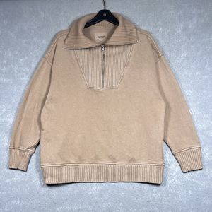 Aerie Sweater Womens Size Small Brown Tab 1/4 Zipper Collar Sweatshirt