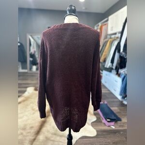 Aerie Sweater Womens Small Maroon Chunky Cable Knit Pullover Cozy Oversized Wool