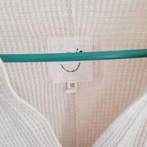 Aerie Sweater Womens XXS Beige Collared V-Neck Waffle Knit Oversized Long Sleeve