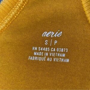 Cozy and stylish Aerie sweater with a rounded neck and a V-neck gathered back for a unique, flattering design. Long sleeves and a soft yellow color make it a perfect addition to your wardrobe for layering or solo wear.