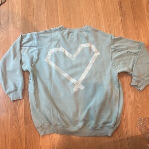Aerie Sweatshirt Oversized Graphic Heart Light Blue Size Medium