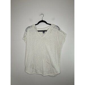 Aerie Sweatshirt Women’s Short Sleeve Sweatshirt Beige Hoodie Lace Size Large
