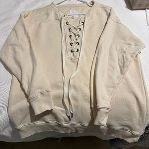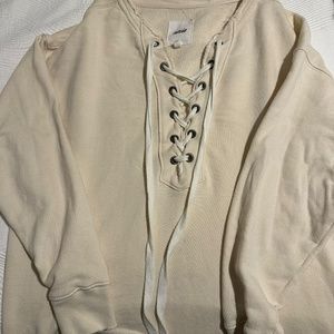 Tie, simple casual sweatshirt, easily style with jeans, leggings, looks great with jean shorts! Very soft and comfortable.