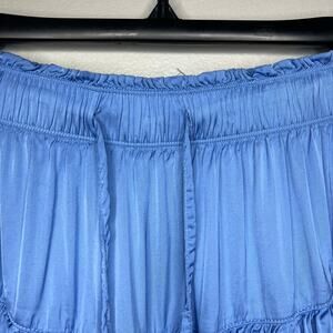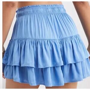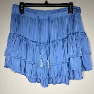 Aerie Sweet N Silky Satin Ruffle Tiered Mini Skirt Blue Sz L Flowy Y2K Western