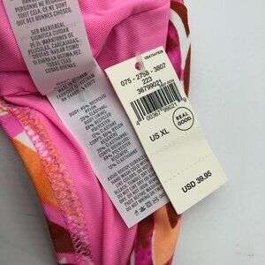 Aerie Swim Halter Bikini Top Keyhole Removable Cups Floral Print Pink Orange XL