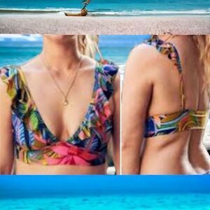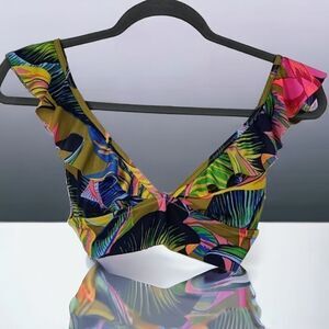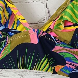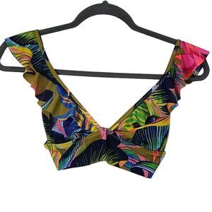 Aerie Swim Real Good Tropical Print Ruffle Longline Triangle Bikini Top Swimwear