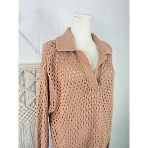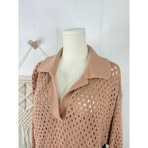 Aerie Tan Oversized Open Knit Polo Sweater Size Medium