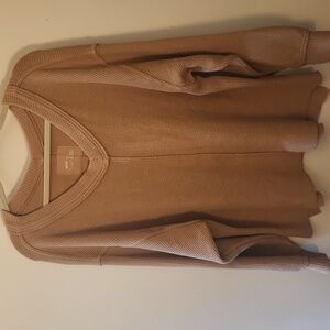Aerie Tan Wonder Ribbed Textured V-Neck Sweatshirt, Size M