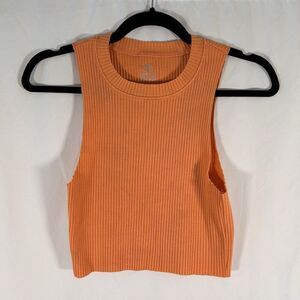 Aerie Tank Top Women's Medium Orange Ribbed Sleeveless Crew Neck Cropped