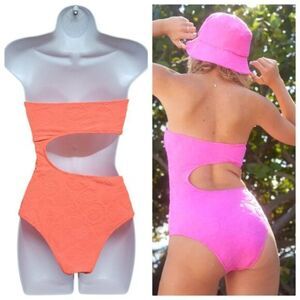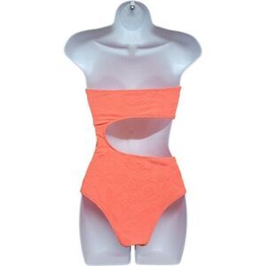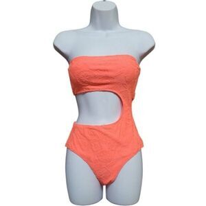Aerie Terry Cut Out Strapless Neon Orange One Piece Swimsuit S