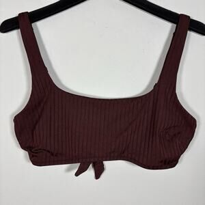 Aerie Tie Banded Wide Strap Ribbed Scoop Bikini Swim Top Size XL Rust Brown Beach Summer Vacation