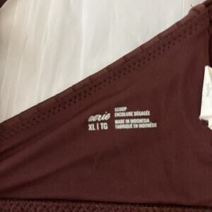 Aerie Tie Banded Wide Strap Scoop Bikini Swim Top Size XL Rust Brown Beach
