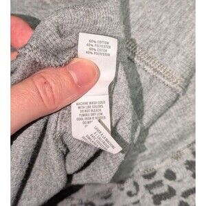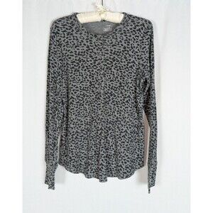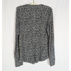 Aerie Top L Women's Gray Leopard Print Snap Button Henley Long Sleeve