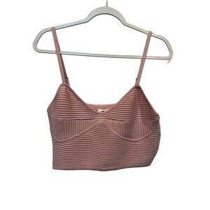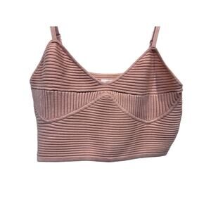 Aerie Top Womens XL Pink Knit Sweater Ribbed Strappy Crop Tank Boho Festival NEW