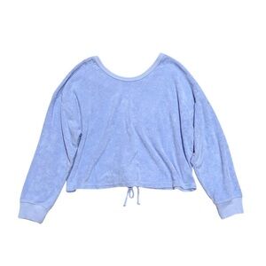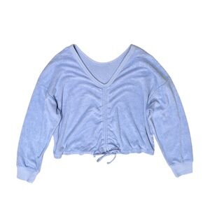 Aerie Towel Terry Cinch Ruched Cropped Pullover Sweatshirt in Periwinkle Blue. Size Large. New without tags. Has never been worn. Adjustable drawstring can be worn in front or back. Loose fit. Soft towel terry material.