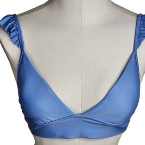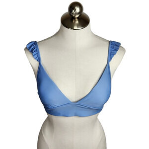 Aerie Triangle Ruffle Strap Bikini Swim Top Womens XS Blue