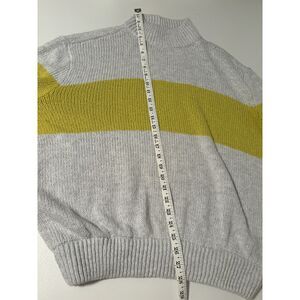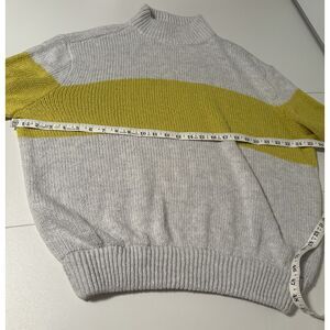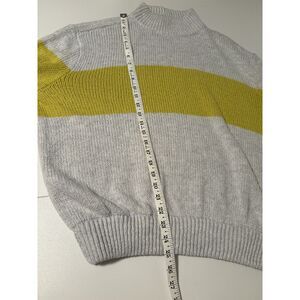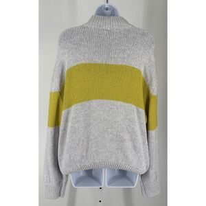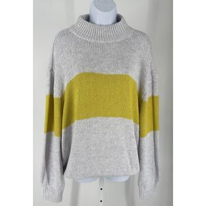 This colorblock turtleneck sweater from Aerie combines cozy comfort with trendy style. Featuring a soft chunky knit fabric in heather gray with a bold mustard yellow stripe, it offers a relaxed, oversized fit that’s perfect for layering. The foldover turtleneck, drop shoulders, and ribbed cuffs and hem add a touch of casual sophistication. Ideal for chilly days, this Aerie colorblock sweater pairs perfectly with jeans or leggings for a cute and cozy fall or winter look.
