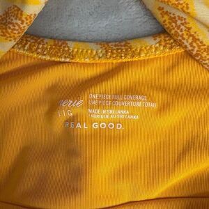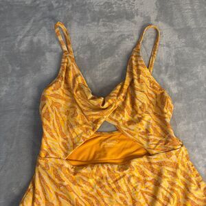 Aerie Twist front Cut Out Zeba Print Swimsuit Women's L Yellow Orange Full Cover