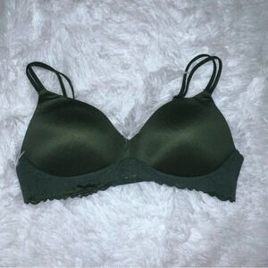 Aerie Unlined Real Me 38B Lace Detail Hunter Green Bra