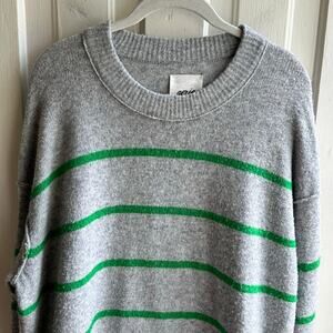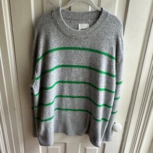 Aerie Unreal Striped Sweater Oversized Gray Green