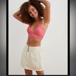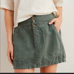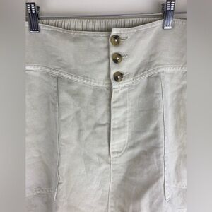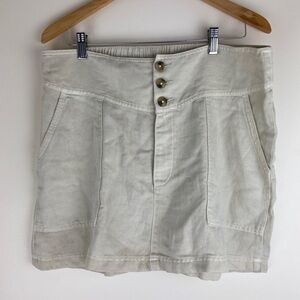 Aerie V Twill Skirt Woman’s XL Linen Blend Tan Button Front Elastic Back Beige