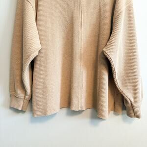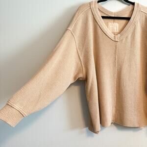 Aerie Waffle Knit Oversized Slouchy V-Neck Sweatshirt Tan Size M