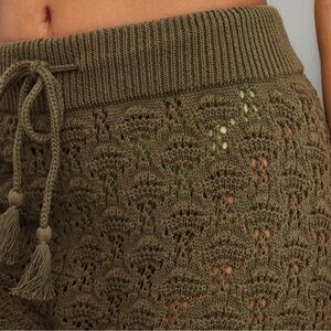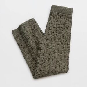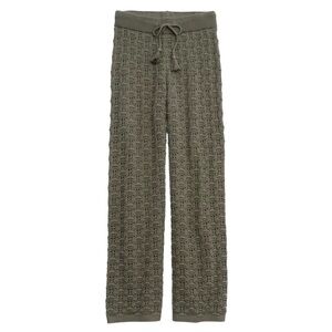 Aerie Washed Olive Green Crochet Knit Coverup Lounge Pants Size Medium