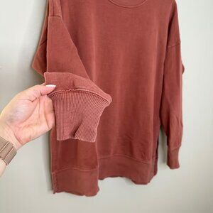 Aerie Washed Oversized Tunic Sweatshirt Top Women's Small S Slit Hem Terracotta