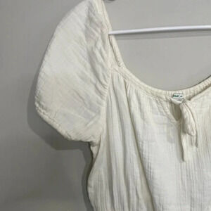 Aerie White Gauzy 100% Cotton Peasant Style Short Sleeve Romper