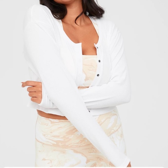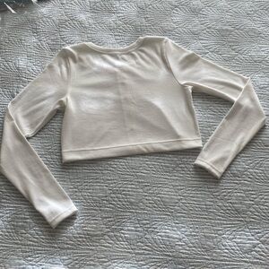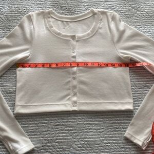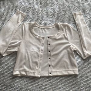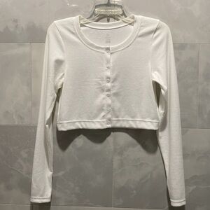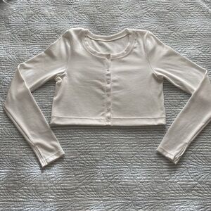 Super cute soft long sleeve button up top. Slightly cropped. NWOT only worn once for try on and was a bit too short in my arms.