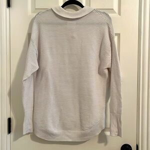Aerie White Ribbed Collared Quarter-Zip Pullover Small Athleisure Loungewear