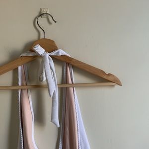 Aerie White Ribbed V Neck Deep Plunge Low Back Swimsuit