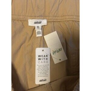 Aerie Wide Leg Cargo 100% Cotton Womens Pants Size XXL Tan NWT Elastic Waist