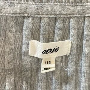 Aerie Wide Rib Crop Knit Button Down Cardigan Sweater in Gray Size Large