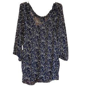 Aerie Woman's Floral Sheer Casual Plus Size Navy Blouse Size XXL