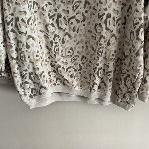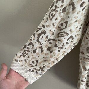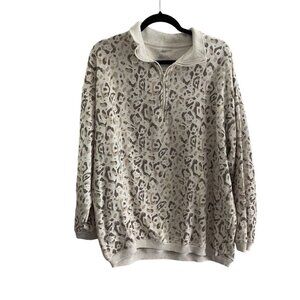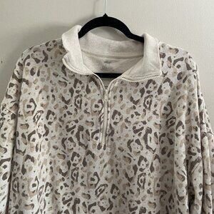 Aerie Women M Beige Leopard Print Good Vibes Oversized Quarter Zip Sweatshirt