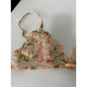 Aerie Women Medium Sandalwood Green Floral Lace Bralette Embroidery Mesh Unlined
