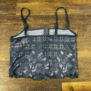 Aerie Women's Blue Floral Lace Spaghetti Real Good Crop Tank Tops Size Small NWT