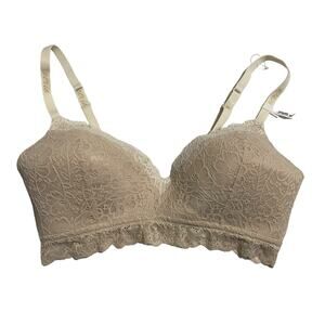 Aerie Womens Bra Size 36DD Real Happy Wireless Lightly Lined Lace Bralette Beige