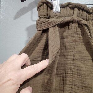Aerie Women's Brown Gauzy 100% Cotton Belted Shorts Pockets Boho Casual Sz Small. Please note slight wear from it's pre-owned condition. All measurements are approximate.