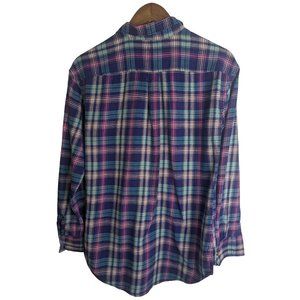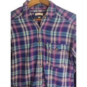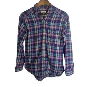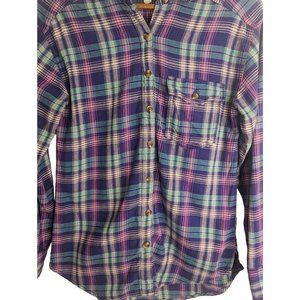 Aerie Women's Classic Cotton Flannel Purple Plaid Shirt Front Pocket sz S