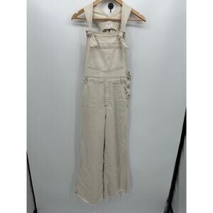 Aerie Womens Cream Denim Overalls Size M Wid Leg Boho Artsy Minimal Neutral