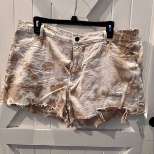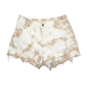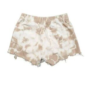 Aerie Women's Cream and White Tie Dye Distressed Pull On Shorts